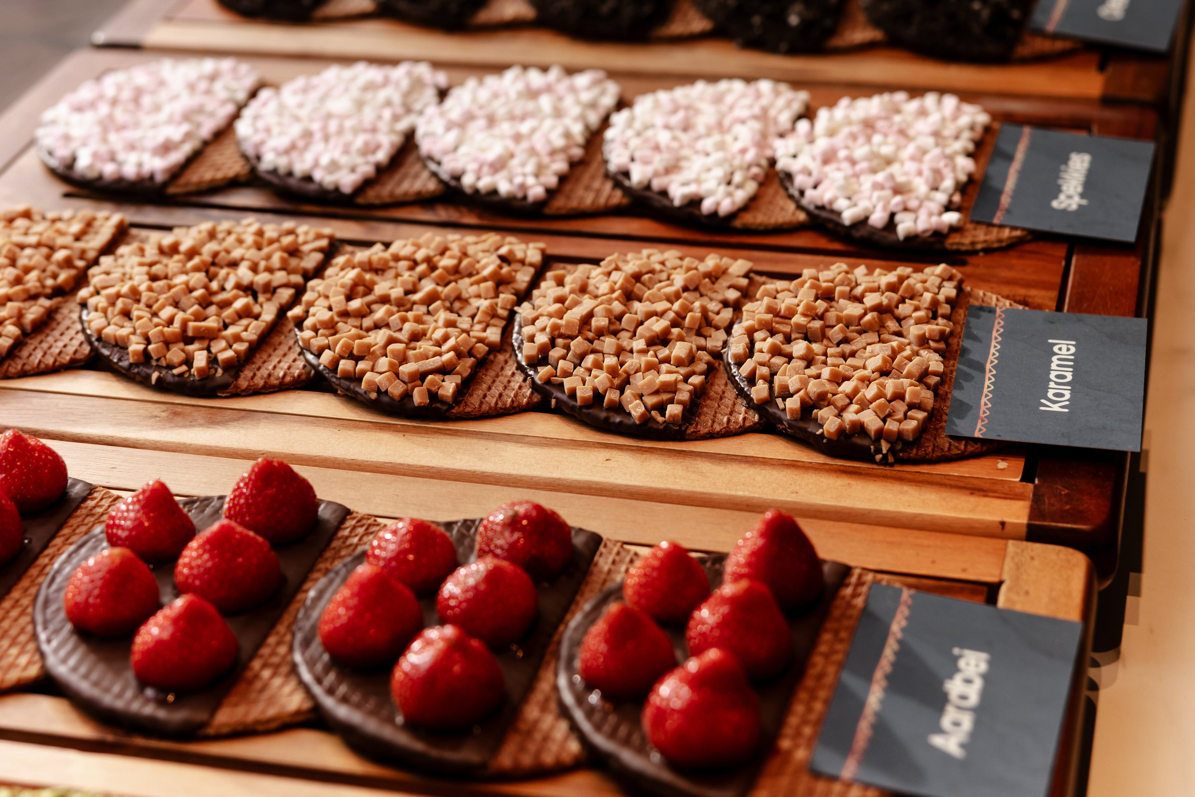 Across Amsterdam, our bakery doors are open and the stroopwafels are baked fresh every day. Visit one of our iconic locations and enjoy a warm stroopwafel straight from the iron.